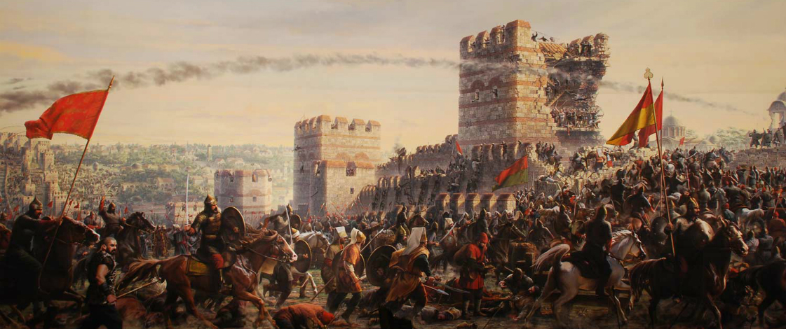 Prvih dana aprila 1453. je počela opsada Carigrada. O tome i osvajanju možete pročitati ovde. U opsadi Carigrada nalazio se i pomoćni odred Srba od 1.500 ljudi pod vođstvom vojvode Jakše. To je bila neravnopravna borba. Pri opsadi Carigrada, Mehmed II je upotrebio novo oružje – topove. Mali topovi kojima je raspolagao Carigrad nisu mogli da se mere sa snažnom turskom artiljerijom. Prava opsada započela je 7. aprila.