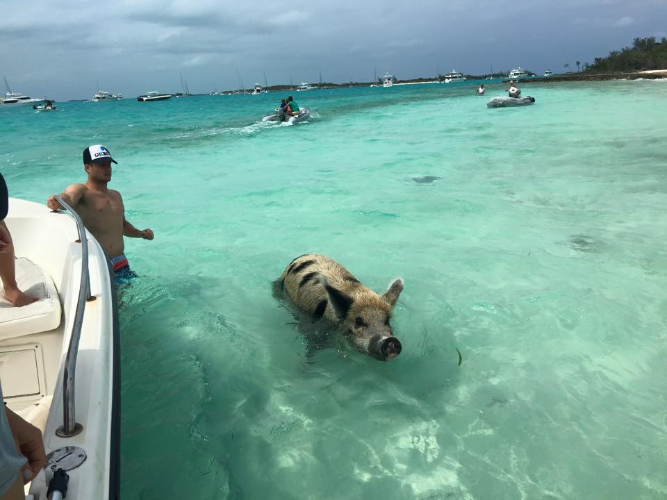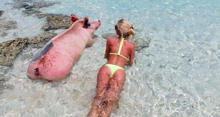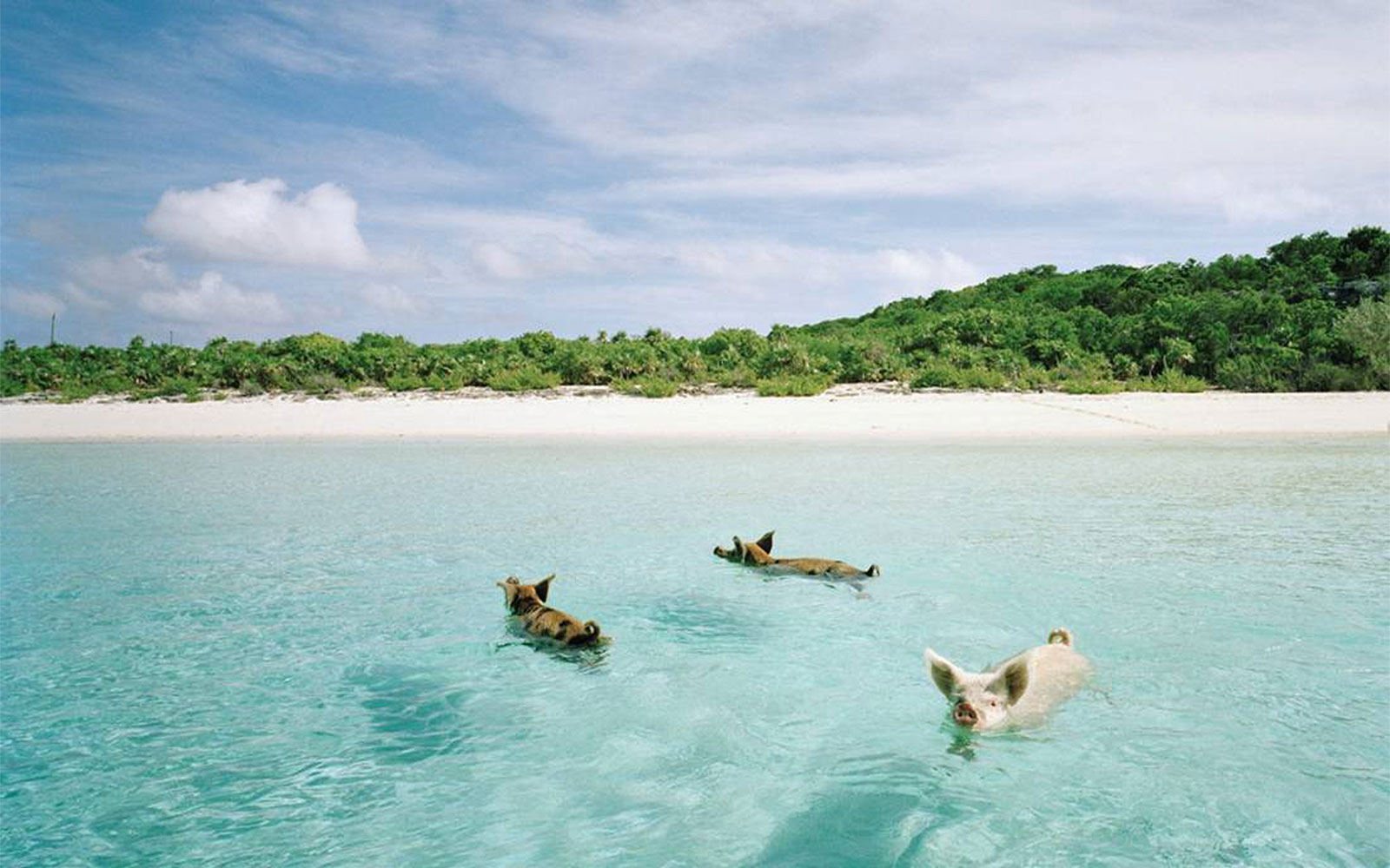Verovatno ste već čuli za ovu destinaciju i čitali po netu o njoj. Reč je o Bahamima, zalivu Eksuma i ostrvu Big Mejdžor Kej ili Prasećem ostrvu, kako ga popularno zovu, gde divlje svinje (#swimmingpigs) žive slobodno. Sem sa kristalno čistim morem i neodoljivim plažama, Bahami se mogu pohvaliti i divljim svinjama koje oduševljavaju turiste, jer žive u nenaseljenom delu Bahama. One su izuzetno pitome, pošto su naviknute na turiste koji ih hrane i – plivaju sa njima.